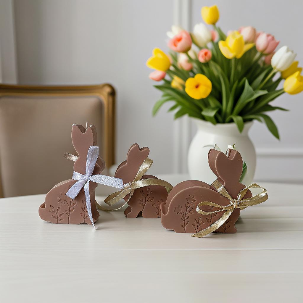 Nosso kit traz 4 velas em formato de mini coelhos. Sem aroma.